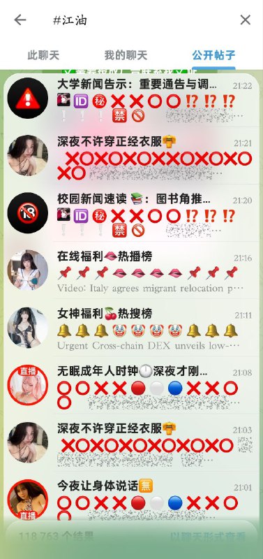 telegram似乎也被的污染了 一搜江油全是 大家一定要注意